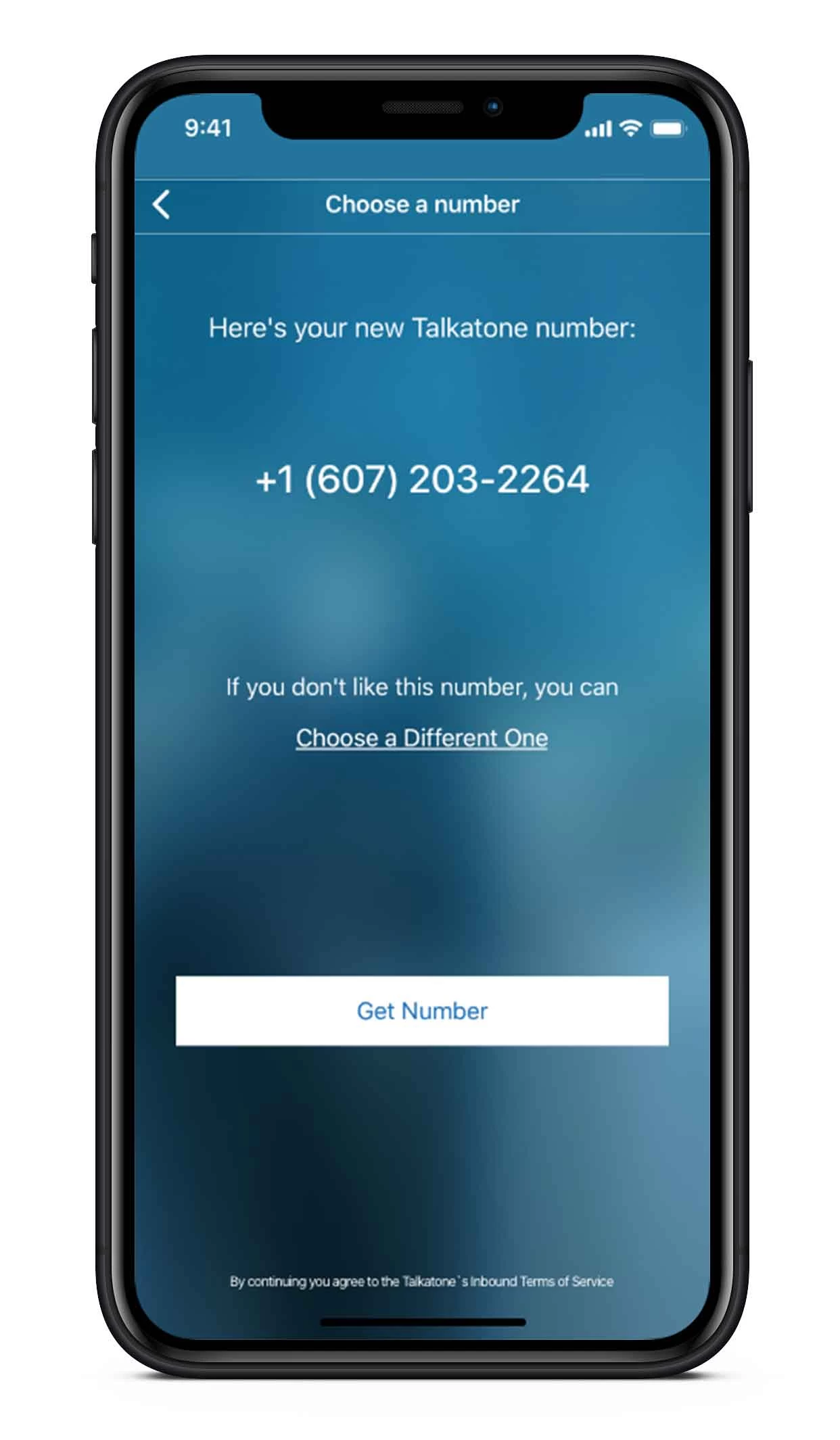 选好之后点击“Get Number”确认即可,Talkatone会将这个号码绑定到你的账号中,这就是你后续使用的一整套通讯身份。