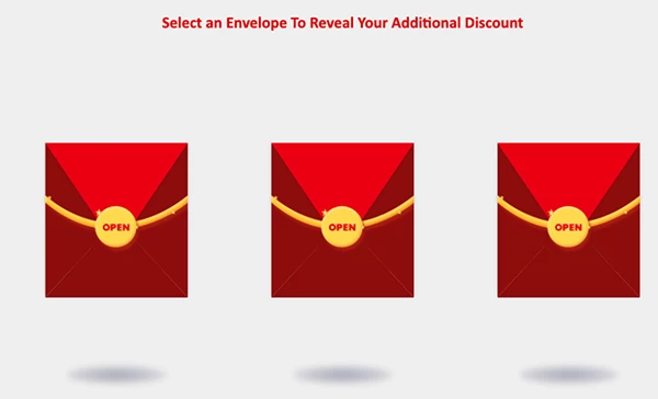 接下来,您需要选择您想要的信封,然后就能看到您收到了多少钱!您收到的金额完全由电脑随机生成,并将作为抵扣额用于抵扣您的订单发票。