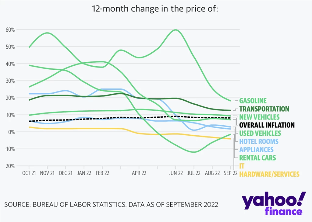 By资讯2026-01-01 通货膨胀?IT行业可没有。 雅虎财经上有一张很棒的图表,总结了美国劳工统计局截至 2022 年 9 月的过去一年的通胀数据。不出所料,汽油价格一路飙升,新车价格也大幅上涨(大概是由于供应链受阻造成的)。哪个领域一直承受着通缩压力?信息技术。 这有几个原因,所以很有道理... 资讯