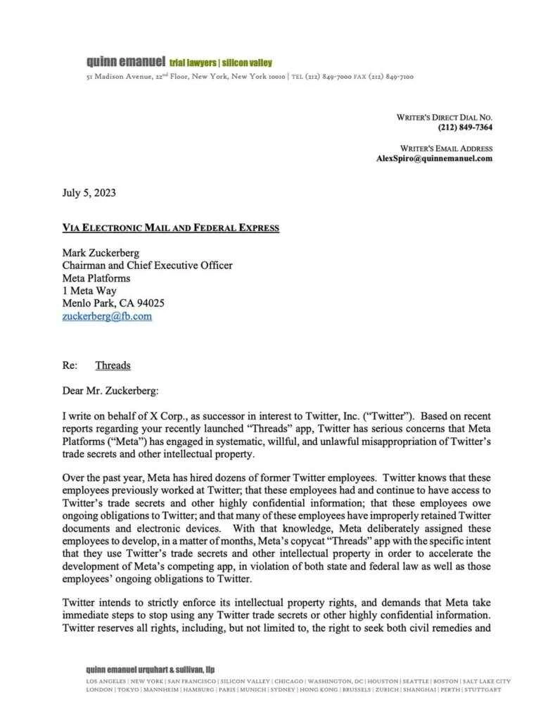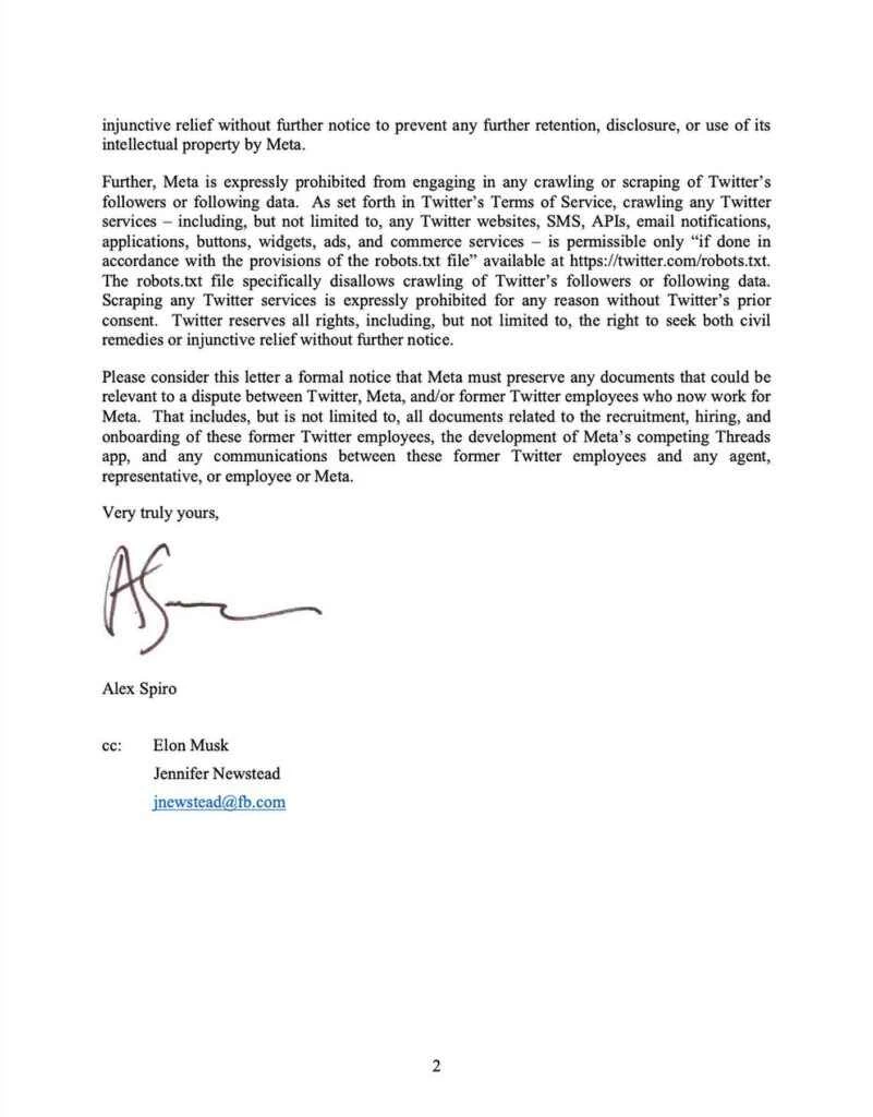 但这对埃隆·马斯克来说无关紧要……因为他让推特向Meta发出了诉讼威胁: