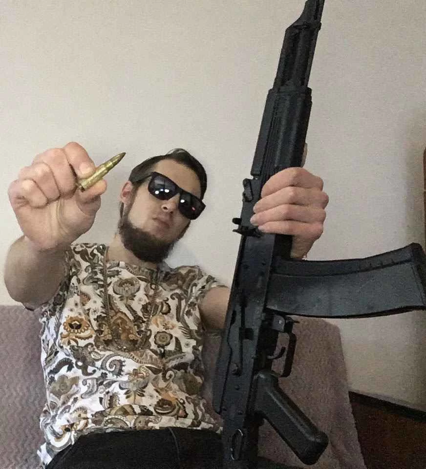 (图中威廉手持AK-74步枪,弹药为7.62毫米,而非5.45毫米。)