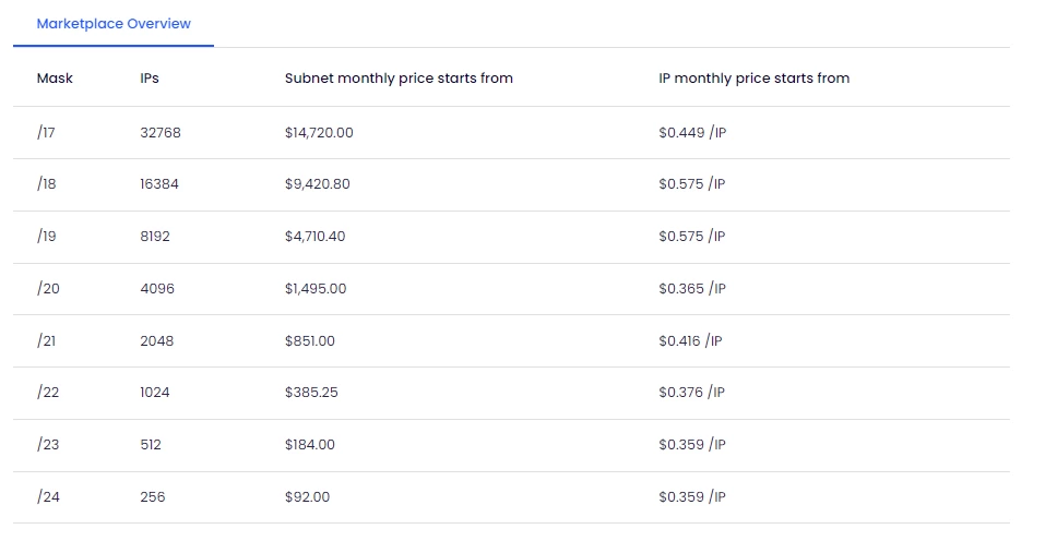 当然,价格会随着区块大小的增大而上涨,但你在论坛上经常看到的是较小的区块大小,例如 /24。