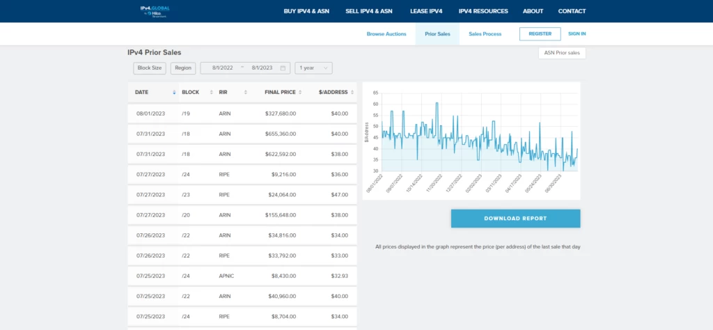 我们可以看到,RIPE /24 刚刚以 9,216 美元的价格售出,APNIC /24 的价格更低。