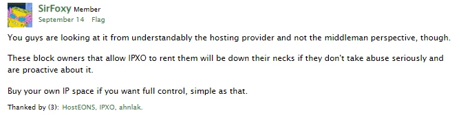 IPXO随后在帖子中回复如下:
