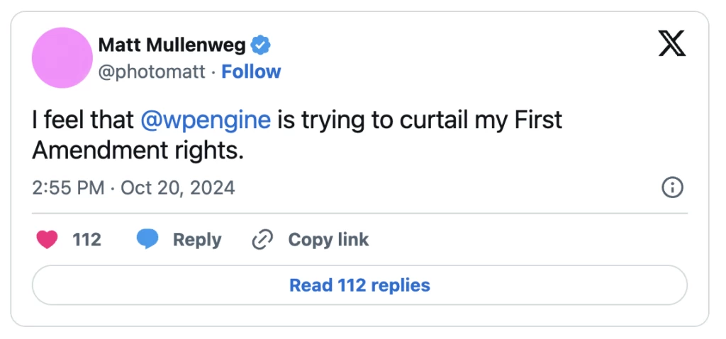 他主要的抱怨是,WPEngine 完全合法地使用开源软件(WordPress)赚钱,而 Mullenweg 却分不到一分钱。他为此写了很多荒谬的文章——甚至还配着爵士乐朗读过——但从根本上讲,WPEngine 并没有做任何违法或错误的事情。