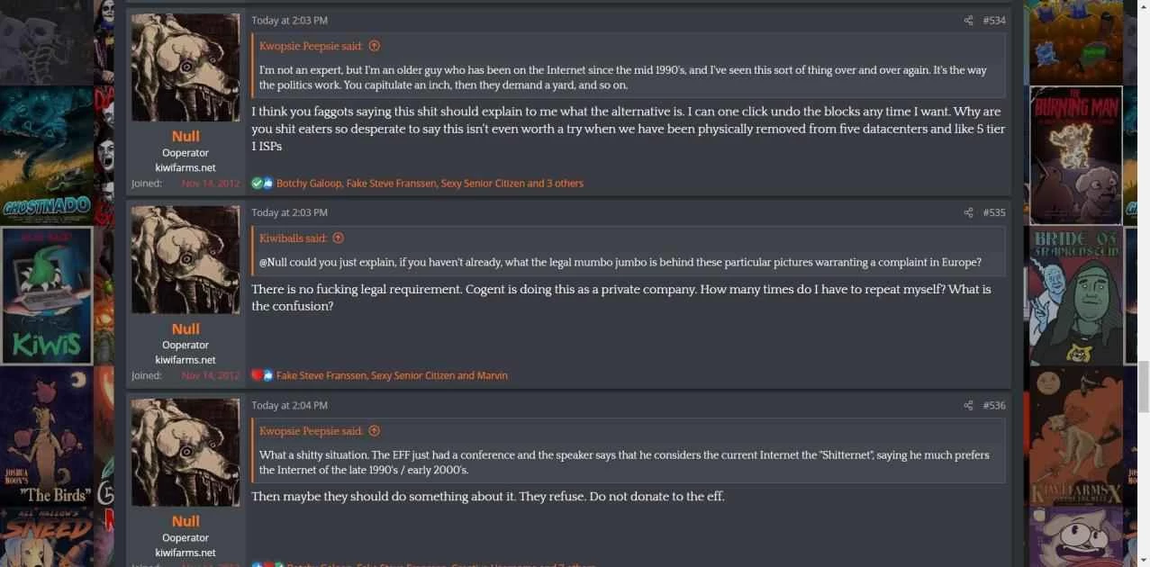 事情又重演了——Kiwi Farms 被封禁是因为他们不管理自己的网站,导致网站内容有害且充满仇恨。