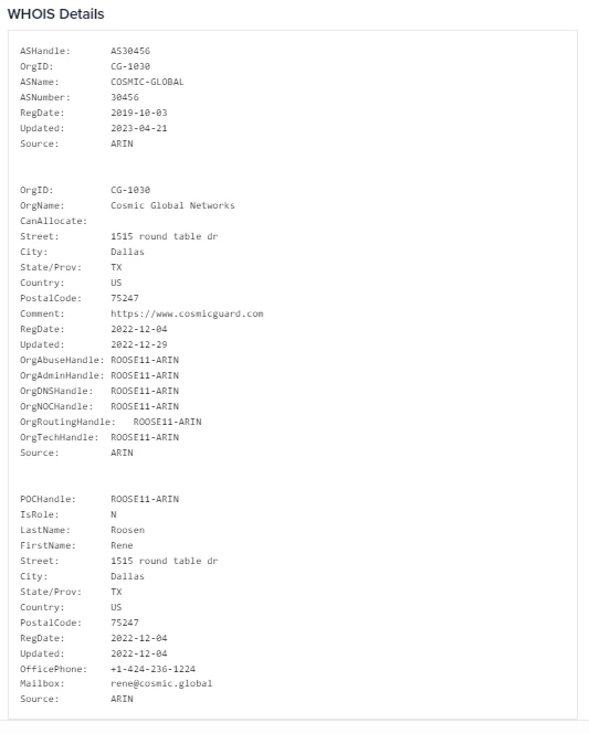 您可以在这里看到GSK和Cosmic Guard的ASN上都提到了Rene Roosen: